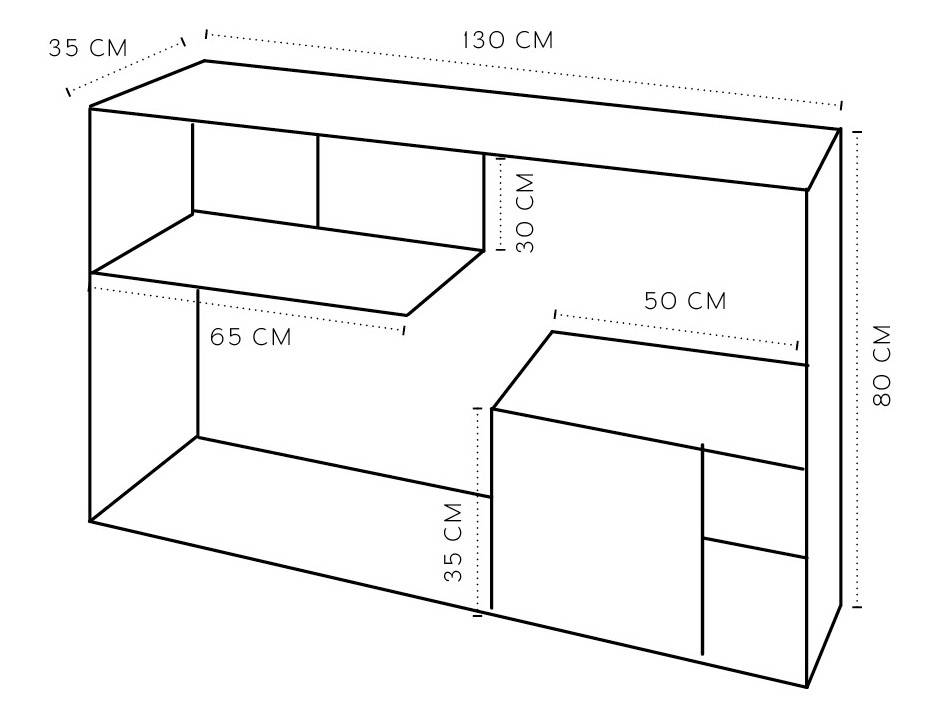 Ancho: 130cm | Fondo: 35cm | Alto 80cm